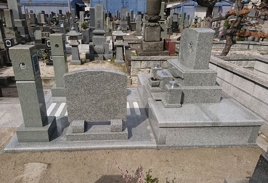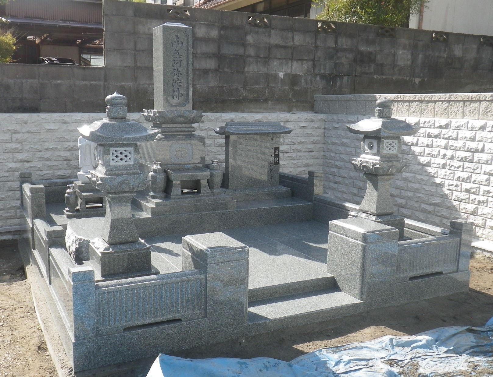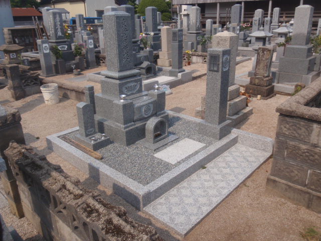 アーバングレー 地上型納骨堂付和型墓石 狭い墓地 島根県松江市 寺町 灯篭・墓誌付き