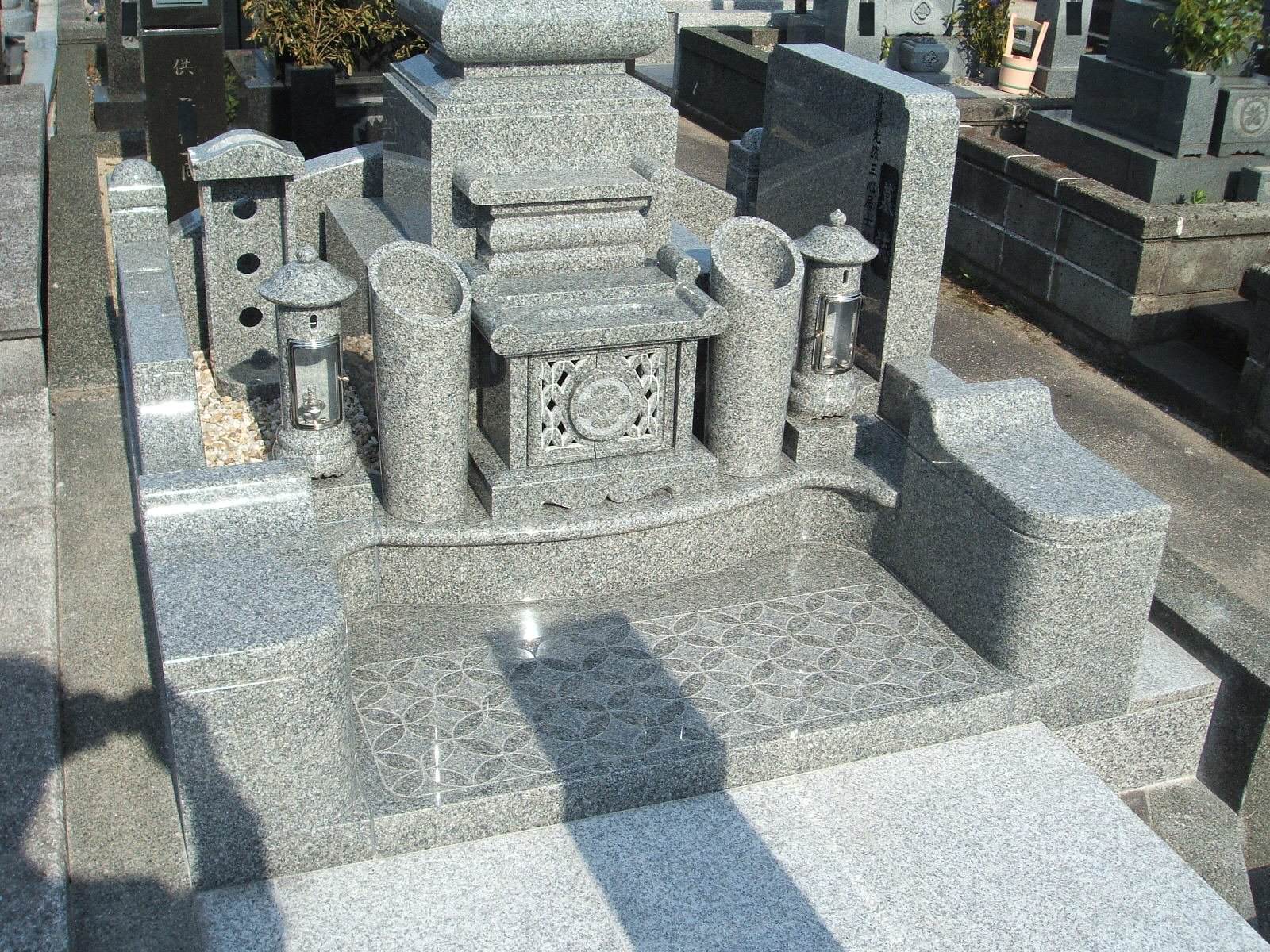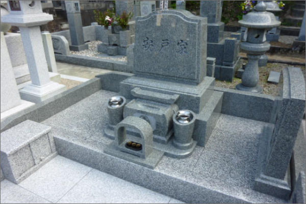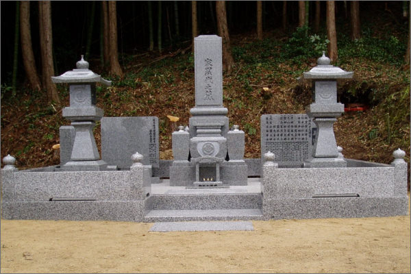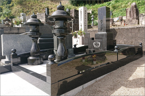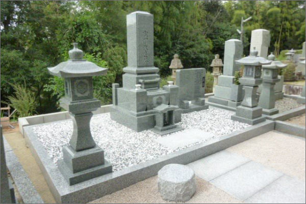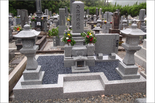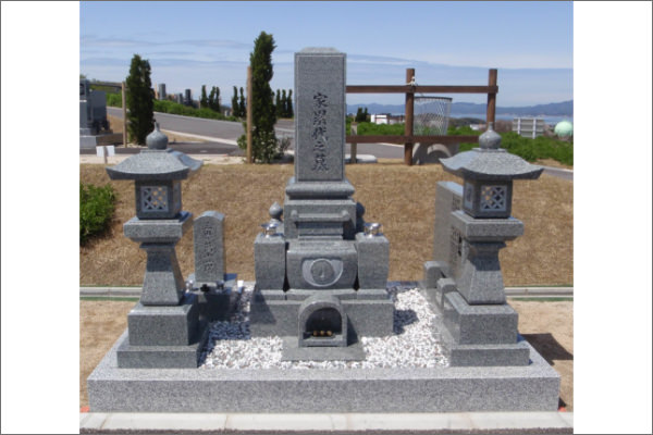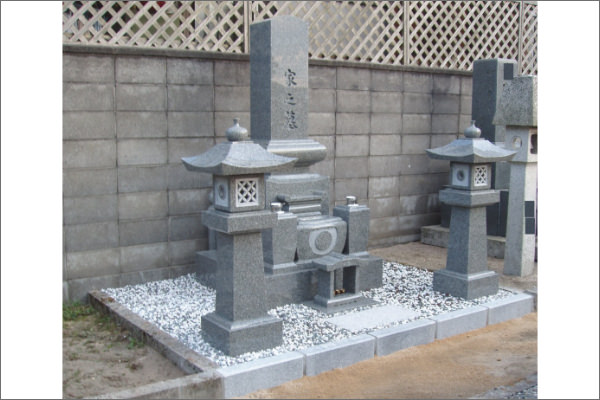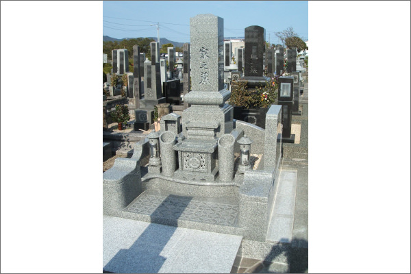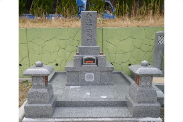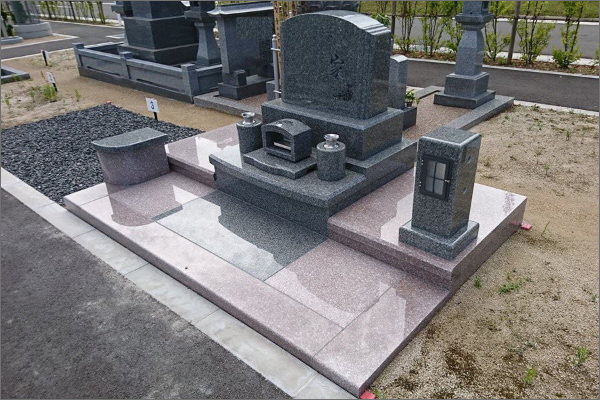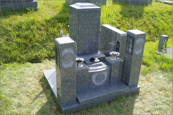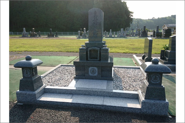 アーバングレー 9寸三重台和型墓石・角柱灯篭付・島根県 松江公園墓地 芝墓所