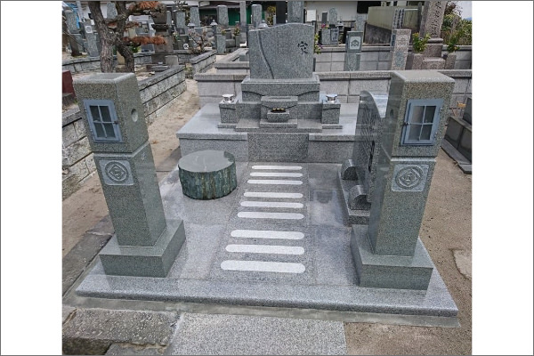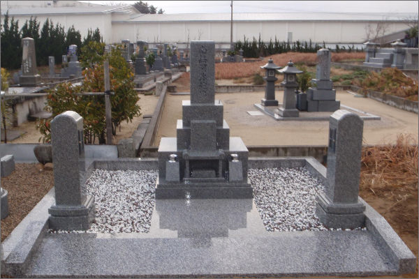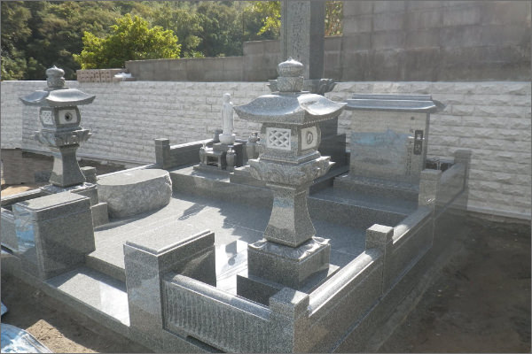 アーバングレー 尺薄布団付墓石・角柱灯篭・物置石・外柵付・島根県 松江公園墓地 一般墓所