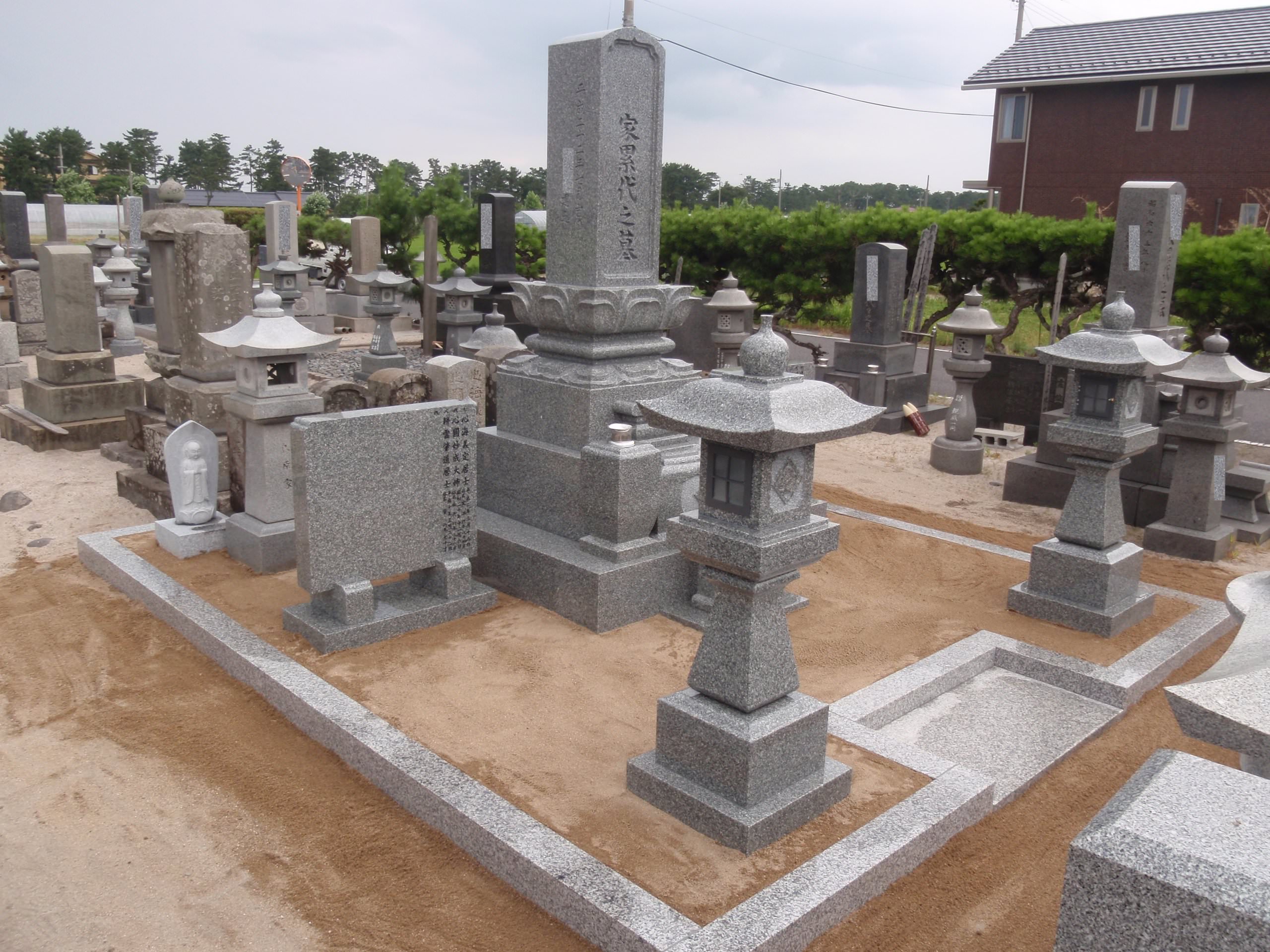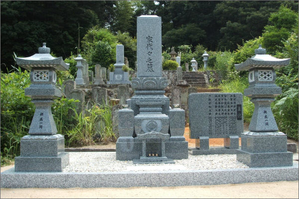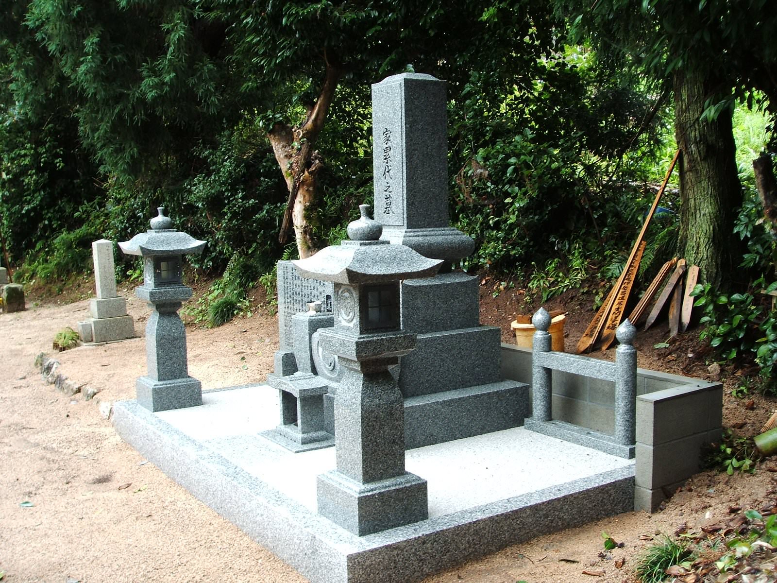 アーバングレー 尺薄布団付墓石・角笠付灯篭・外柵・島根県安来市 兵隊墓と共に