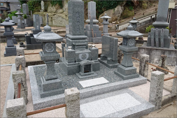 アーバングレー 和型墓石 尺薄布団付墓石・灯篭・戒名板・三界万霊塔・外柵付・塔婆立・島根県 松江公園墓地