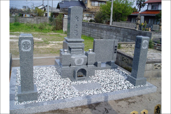 アーバングレー 尺薄布団付墓石・角笠付灯篭・戒名板・外柵・敷石・島根県安来市