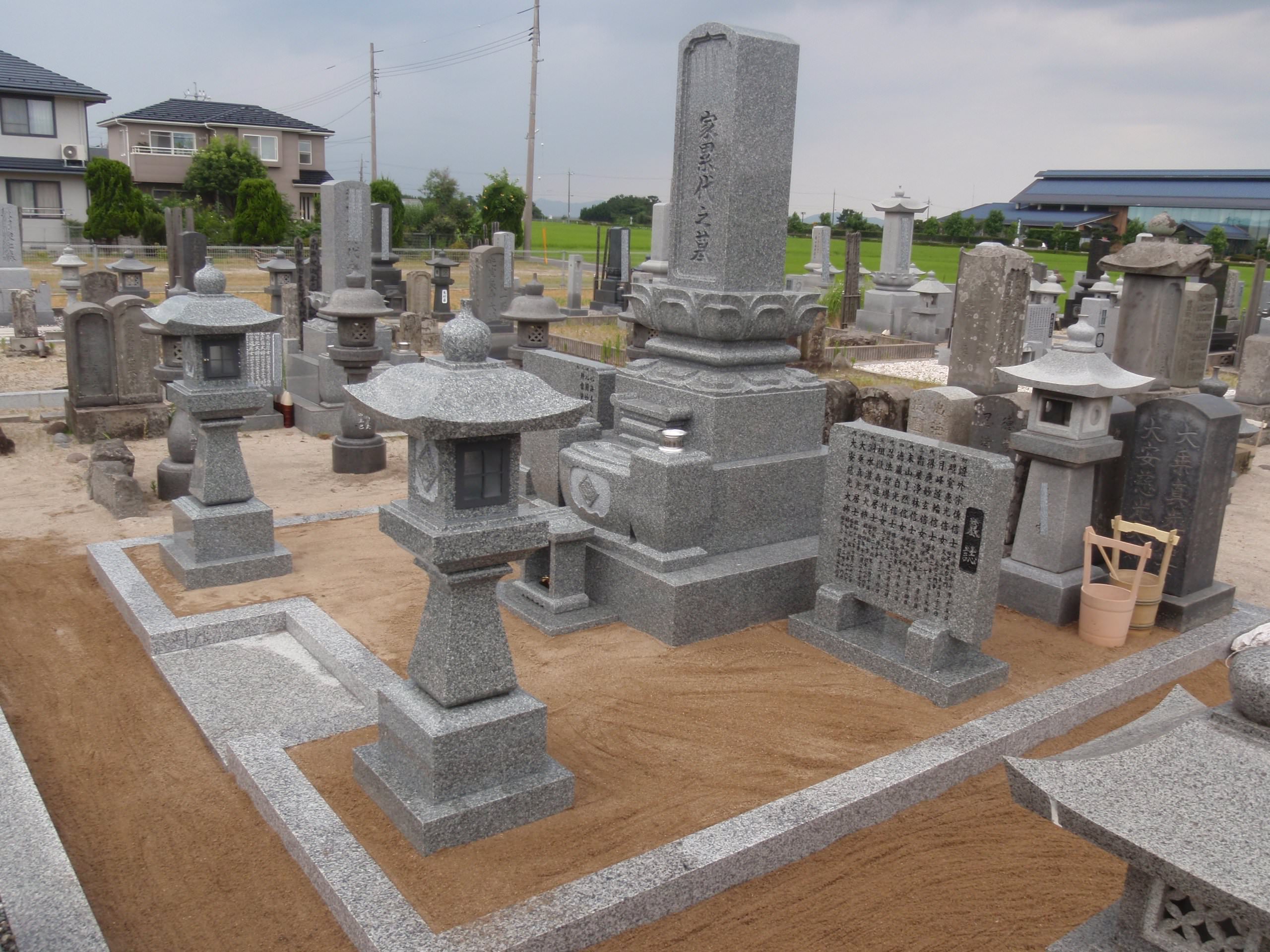 アーバングレー・尺薄布団付墓石・戒名板2組・角笠付灯篭・玉垣外柵・三界万霊塔・草の生えにくい施・島根県安来市広瀬町