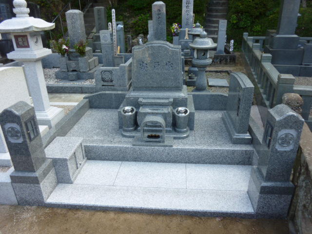 アーバングレー:9寸薄布団付墓石・戒名板・角柱灯篭・塔婆立・外柵:島根県安来市広瀬町