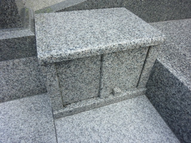 石は硬く水吸いもほとんど見られないので、変色もなく経年変化も少ないので、墓石や外柵に使用するのには大変良い石材です。