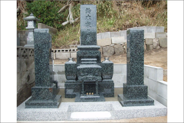 アーバングレー:尺上下蓮華付和型墓石・華塔彫・蓮華付灯篭・地蔵尊・笠付蓮華付墓誌・玉垣外柵・石張り:島根県大田市