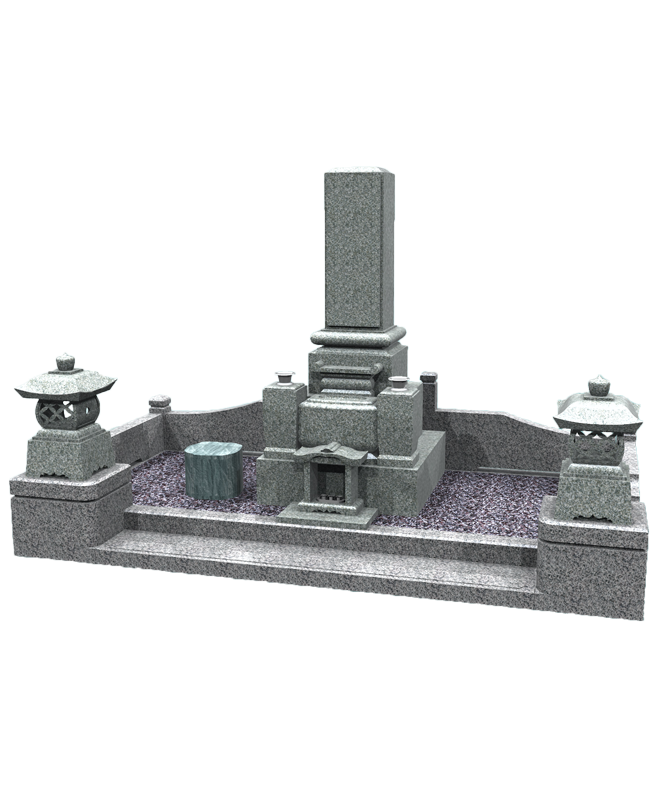 薄布団付墓石セット 置き灯篭・大柱付外柵